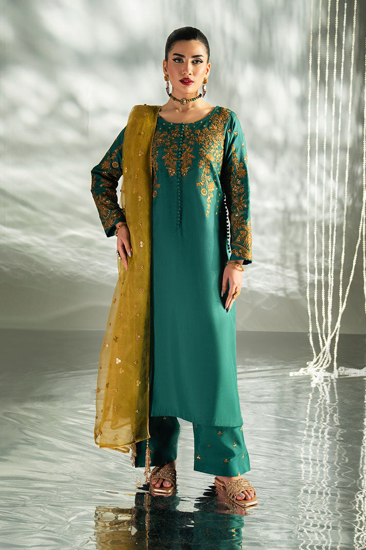 Color: Mazari Green Product Description For UnstitchedFront Panels 1 Pc Embroidered & Hand-Embellished Center Panel...