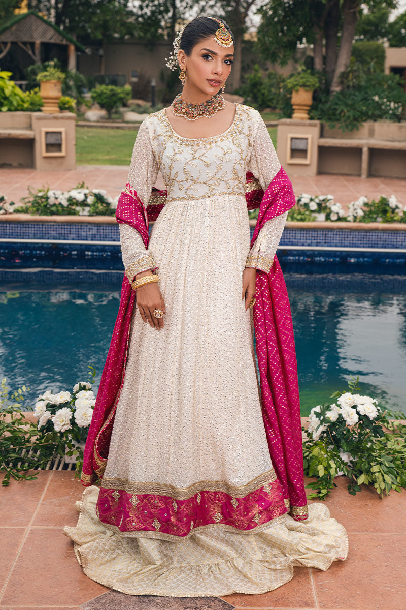 Long silhouette Kalidar in gorgeous ivory gold shade featuring old school zardozi and resham details...