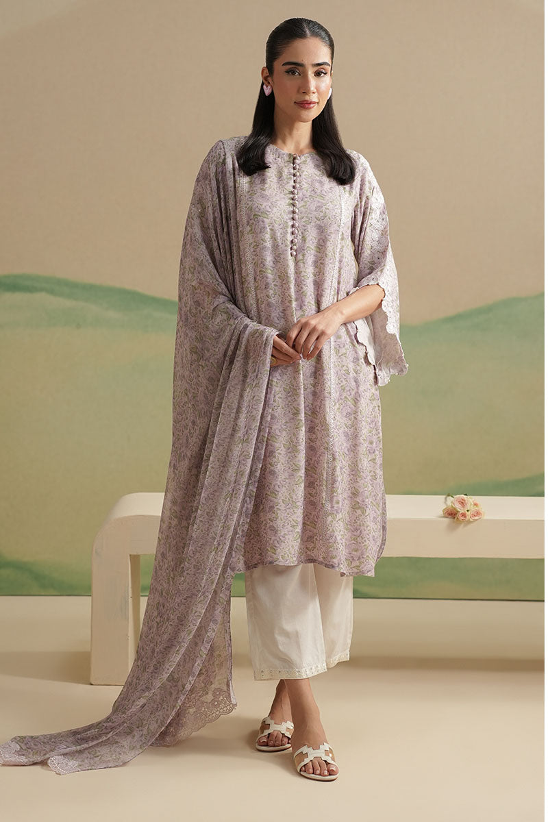 Lavender Swirl-3PC (Shirt, Trouser & Dupatta)