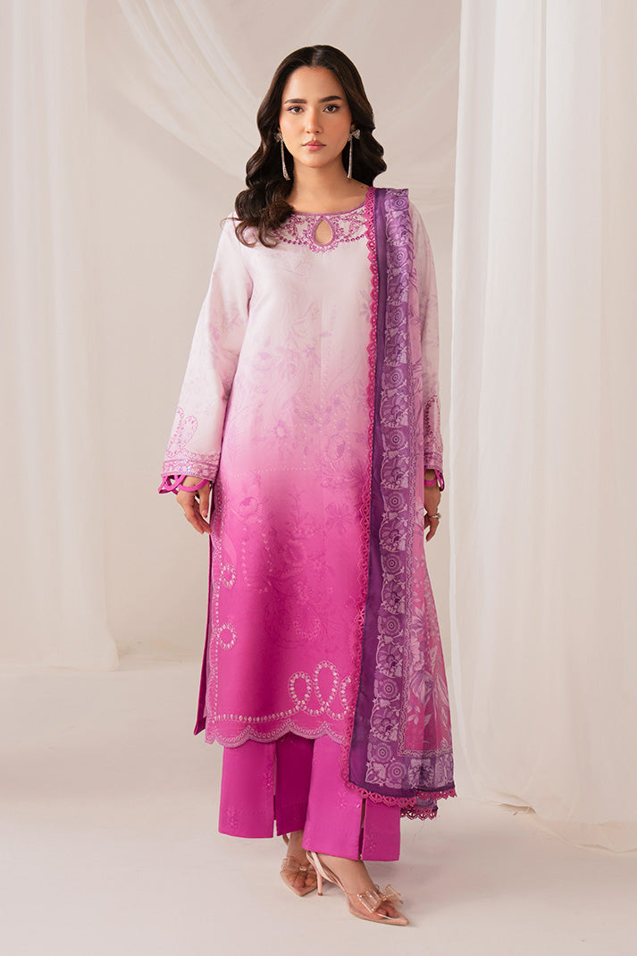 Printed cotton satin shirt.Intricate embroidery on neckline and sleeves.Printed silk dupatta with elegant lace borders.Printed...