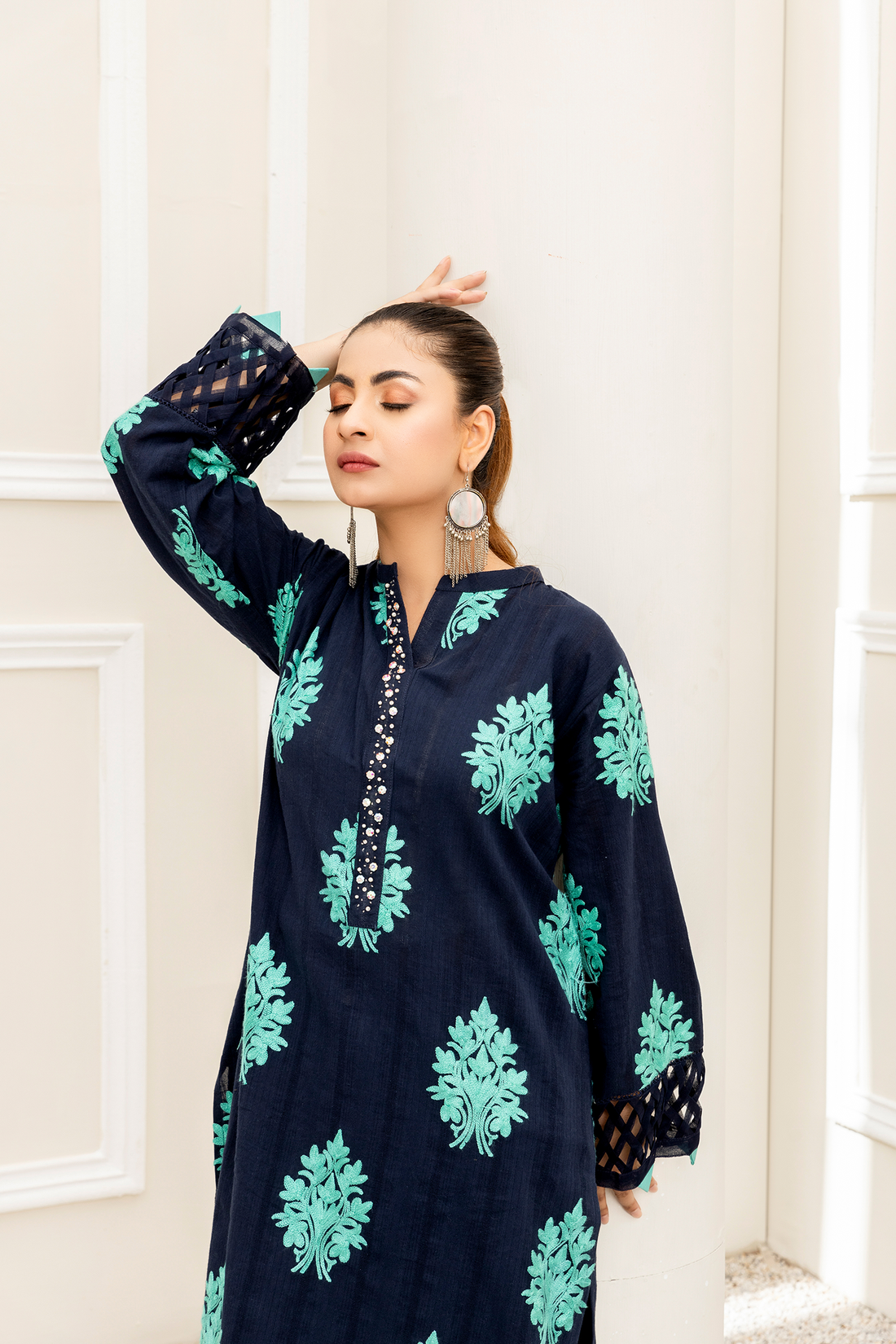 Embroidered Shirt Front of HandKhaddi Pure Cotton Bindi with Embroidery Boarder.Plain Shirt Back of HandKhaddi...