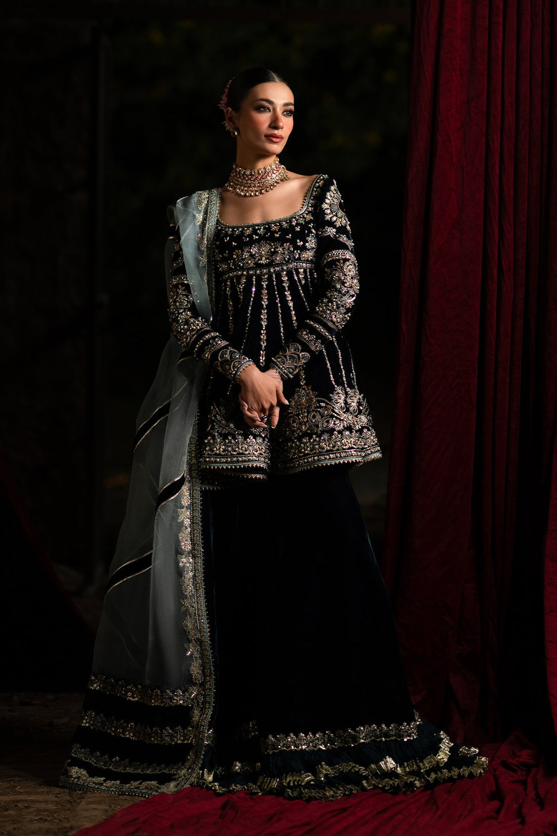 Zareen is a regal velvet ensemble designed to reflect timeless luxury and festive opulence. The...