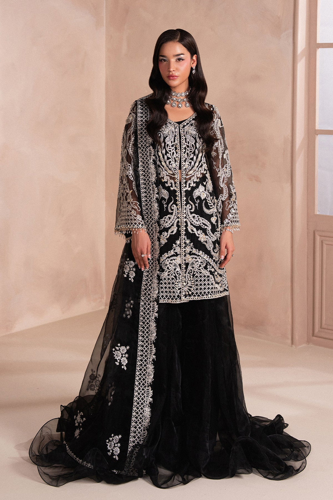 A Mesmerizing Ice Blue Net Pishwas featuring a graceful, floor-length silhouette layered over a long...