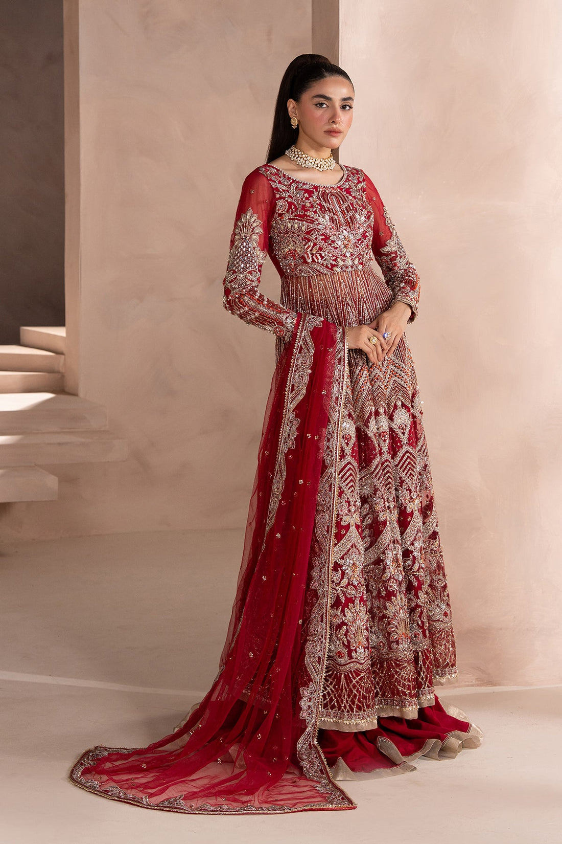 A Stunning Red and Silver Pishwas-style outfit with gold-embellished modern floral motifs. Paired with a...