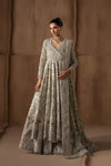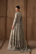 A sheer dupatta, softly edged with delicate accents, drapes effortlessly to lighten the ornate base. The look is rooted in subtle grandeur, timeless, composed, and defined by craftsmanship that speaks gently rather than loudly.