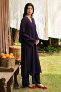 Set Includes solid shirt pants with the v-neckline embossed with scalp and lace - Pure premium karandi with a subtle sheen produced in-house!
