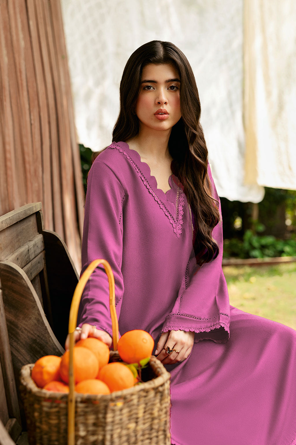 Pink Set includes solid shirt pants with the V neckline embossed scalp with lace - Pure premium karandi with a subtle sheen produced in - house!
