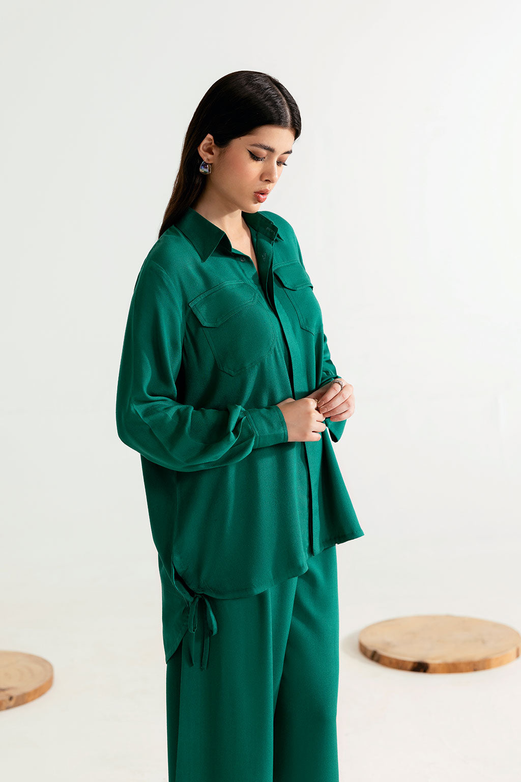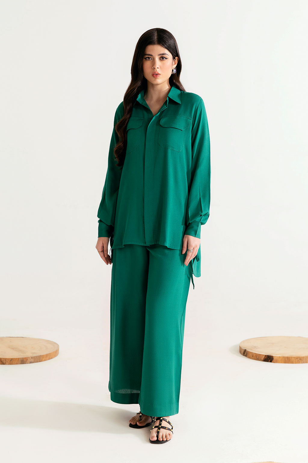 A clean, structured silhouette in Rust karandi €” finished with a classic neckline and flared sleeves with side panel details for effortless winter elegance.