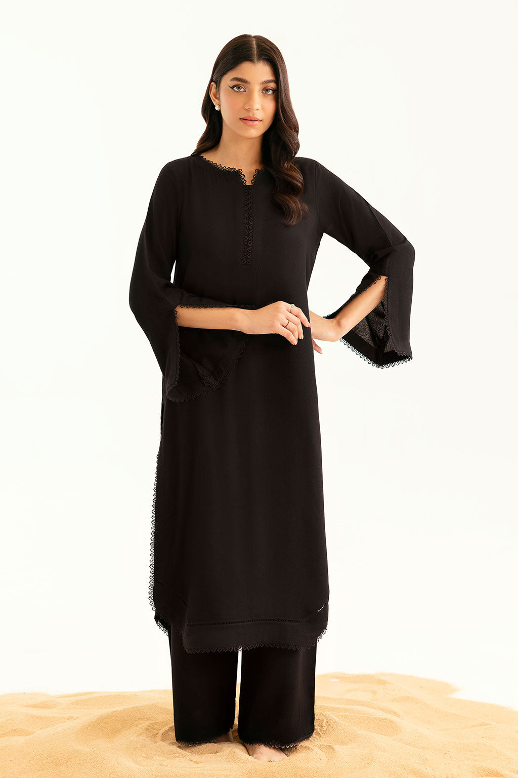 Effortless and contemporary, this winter karandi set in deep black pairs clean lines with functional sleeves for a look thatss both cozy and refined.