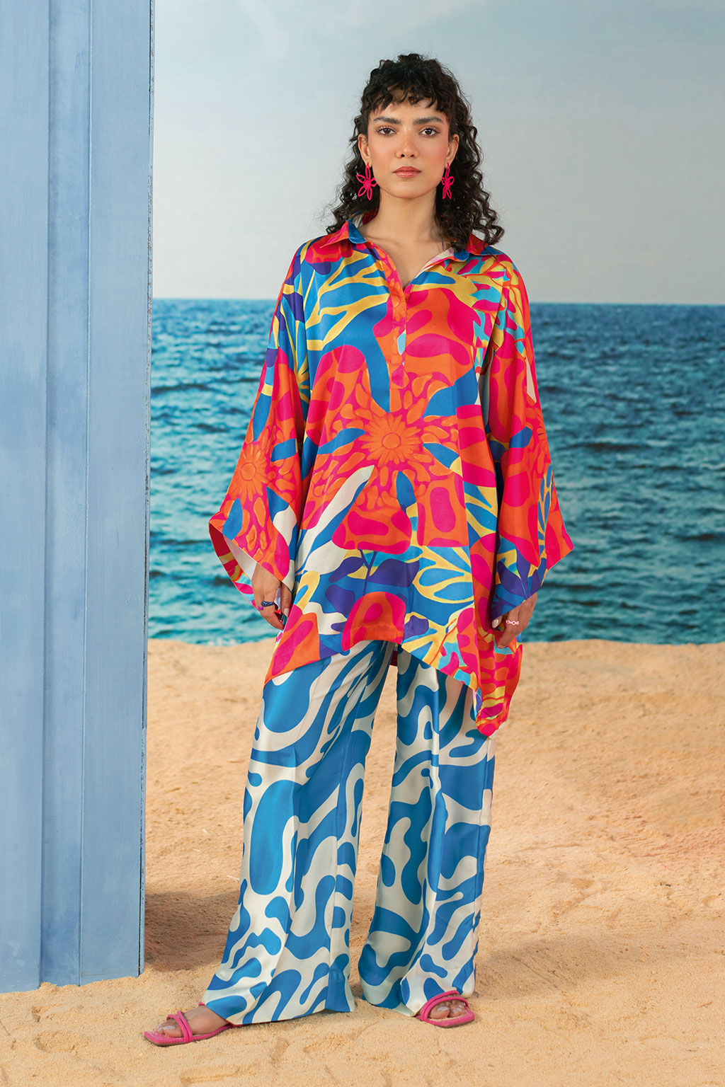 Digital printed set Includes a shirt and straight pants Crease Silk fabric produced in-house