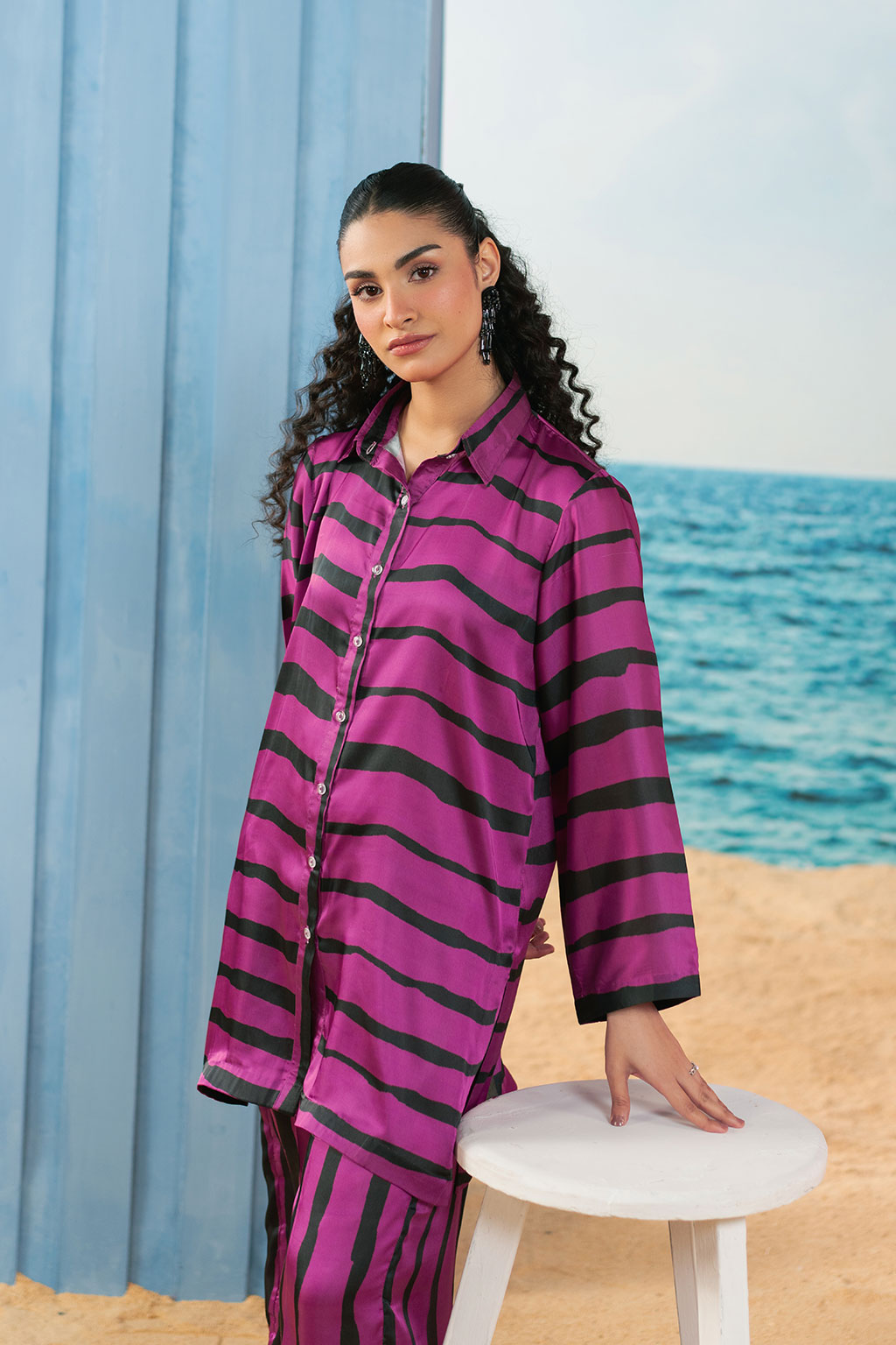 Digital printed set Includes a shirt and straight pants Crease Silk fabric produced in-house