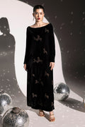 The black Includes a embroidered shirt with a off shoulder neckline -pure premium velvet with a subtle sheen produced in-house!