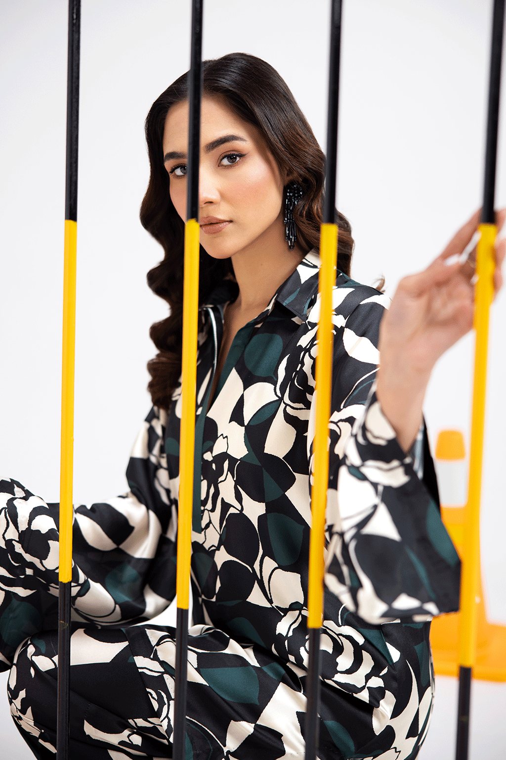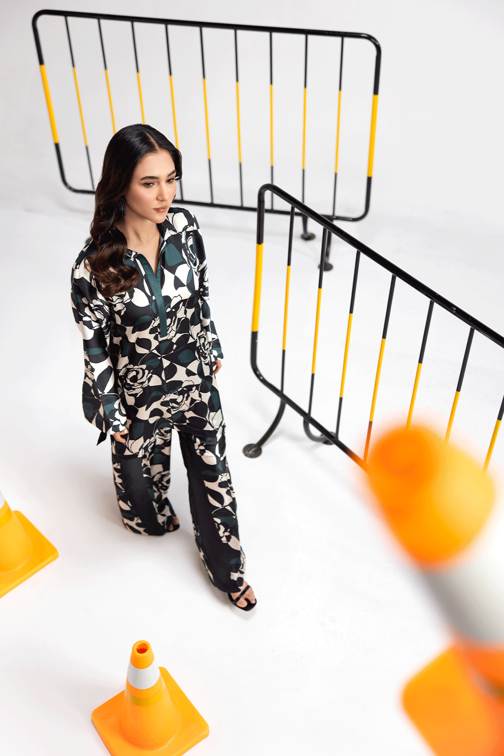 Digital printed set Includes a shirt and straight pants Crease Silk fabric produced in-house Suitable for summers.