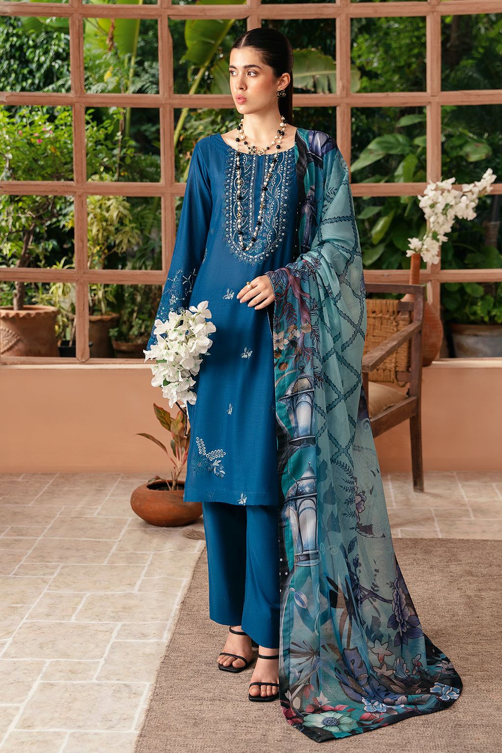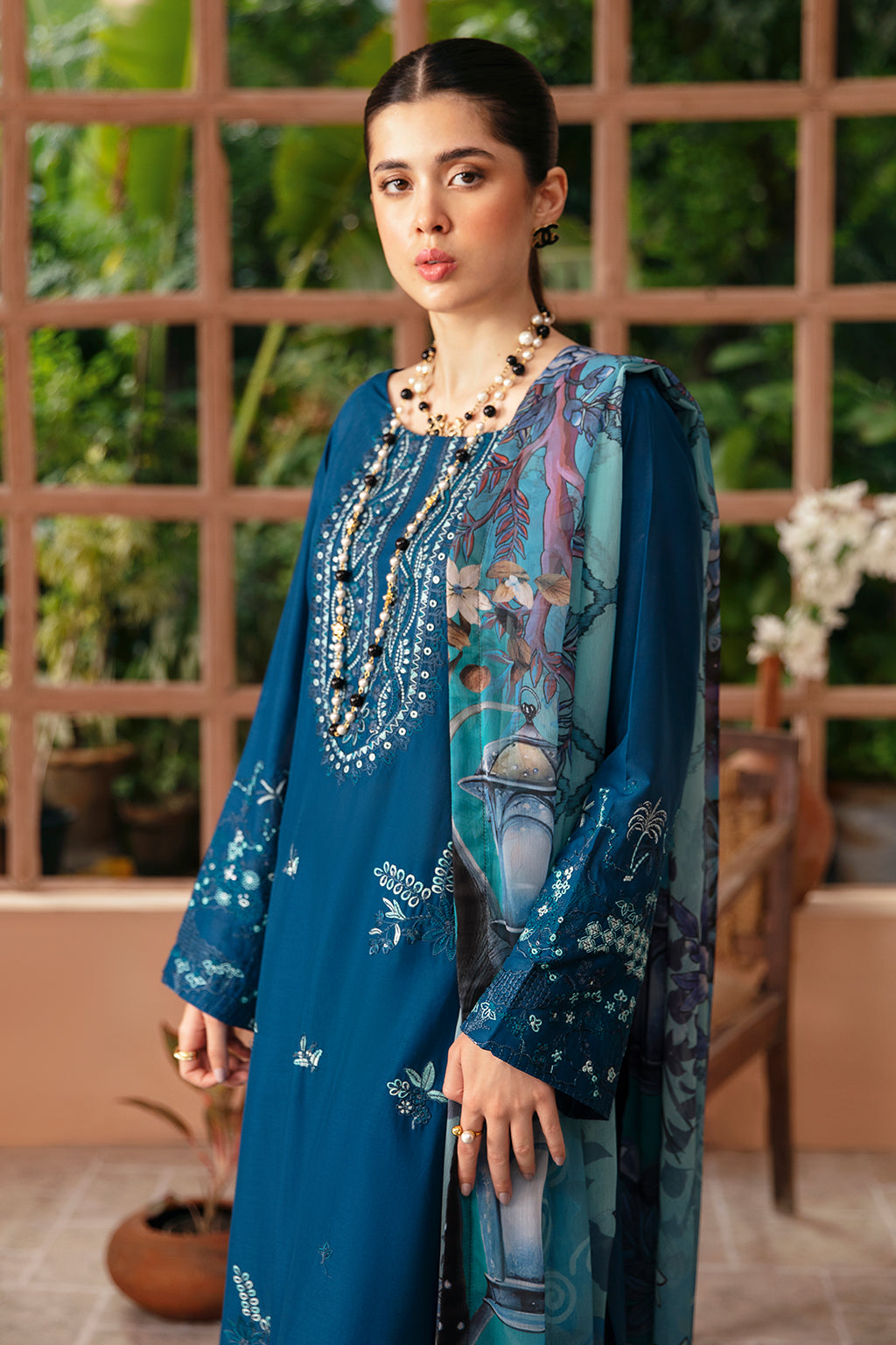 Embroidered lawn front