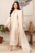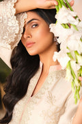 Embrace elegance with MINA, a skin-colored cotton net shirt fully embroidered on the front. Paired with an embroidered organza dupatta and cotton viscose pants, this outfit is perfect for any occasion.