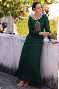 Elevate your wardrobe with Scarlet, where the allure of bottle green meets the sophistication of pure raw silk, creating a timeless kaftan that embodies the essence of grace and refinement.