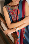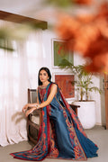 A fully embroidered long blue sheesha Silk shirt, paired with loose crushed pants for a refined and effortless look.