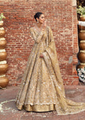 Embrace royal elegance with this opulent bridal gown by Akbar Aslam. The dress is a masterpiece of intricate craftsmanship, featuring elaborate embroidery and hand-embellished details that exude luxury. The deep V-neckline, framed by delicate beadwork, adds a contemporary edge to this traditional silhouette. The full sleeves and flowing skirt create a majestic presence, while the coordinating dupatta enhances the ensemble with its refined charm. Designed for the bride who seeks to make a grand statement, this gown captures the essence of timeless beauty and modern sophistication.