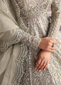 Make a statement on your special day with this exquisitely crafted bridal gown by Akbar Aslam. The gown showcases intricate embellishments and masterful beadwork that catch the light beautifully. The carefully embroidered bodice flows seamlessly into a voluminous skirt, creating a graceful and elegant silhouette. Paired with a sheer dupatta, this ensemble balances traditional craftsmanship with modern sophistication, perfect for the bride who desires both timeless beauty and a contemporary touch.