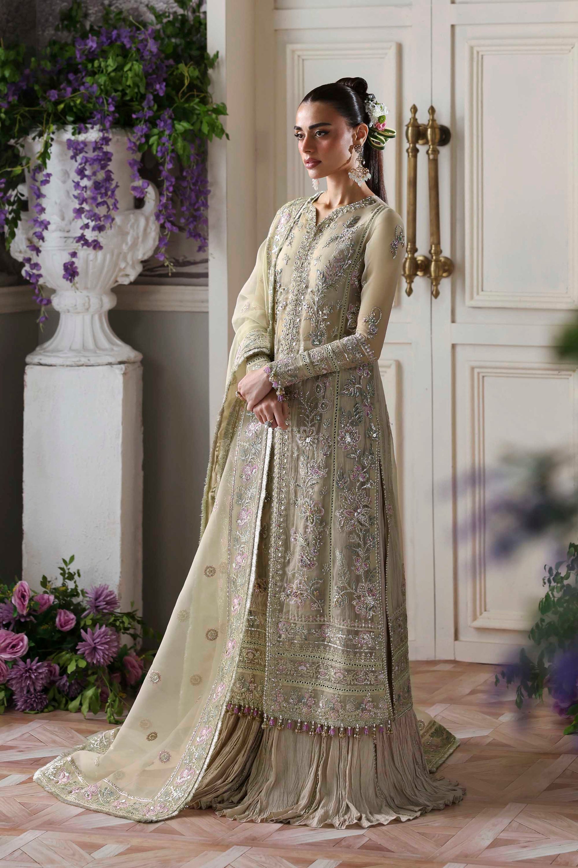 - Organza Embroidered Hand Embellished Left & Right 4 Panels