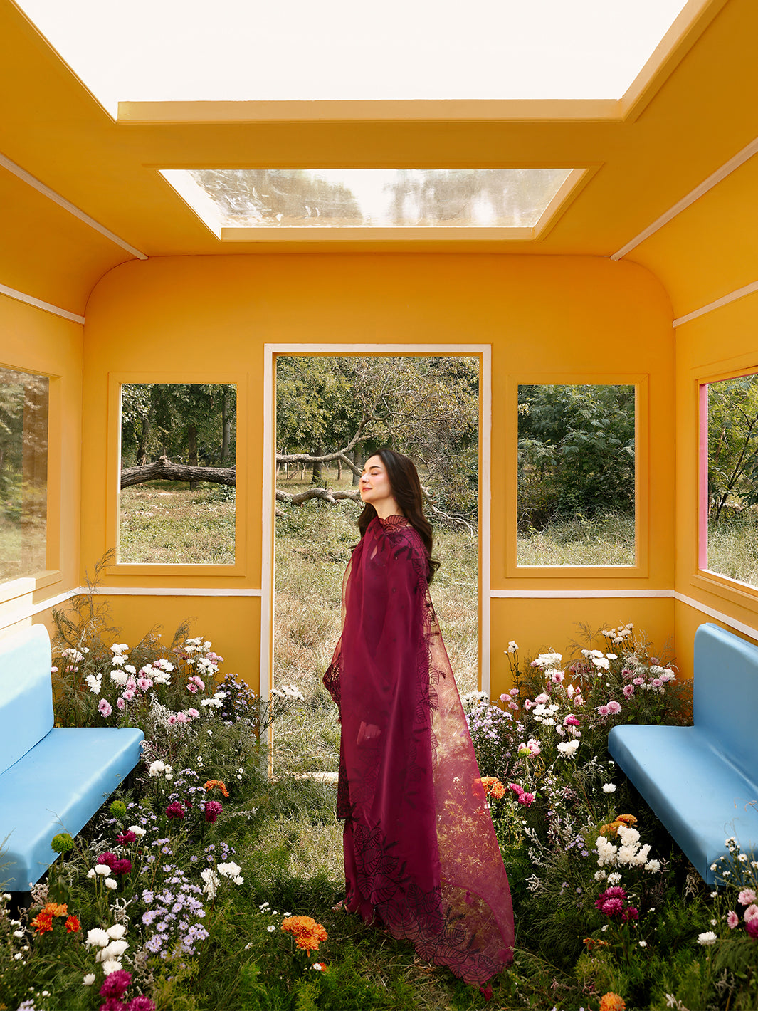 Organza dupatta, which showcases stunning black leaf cutwork embroidery