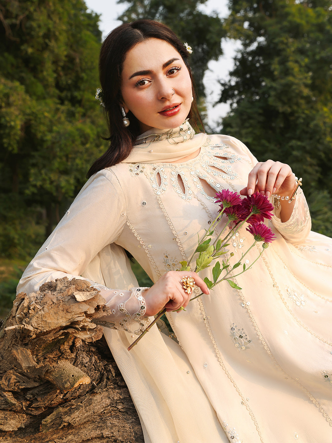Premium chikankari jacquard maxi, annoyingly adorned with spangle embroidery and those over-the-top organza cutwork borders
