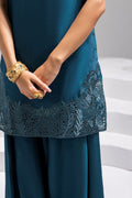 Make an effortlessly elegant statement this festive season with ZAHARA, a contemporary take on designer wear crafted in luxurious raw silk. This 2-piece ensemble features a loose-cut shirt adorned with delicate cutwork embroidery along the hemline, offering timeless grace with a fashion-forward twist. Paired with trending draped box-cut trousers, this outfit is perfect for everything from wedding festivities and dholkis to intimate dinners and formal get-togethers. The clean silhouette and refined detailing make it a versatile addition to any occasionwear wardrobe.