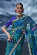 Embroidered premium silk blouse with handwork, printed organza pallu with embroidered border & premium silk paiti coat.
