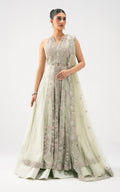 Celestial Aura is a Bridal vision of modern elegance wrapped in traditional artistry. This pastel-hued ensemble is crafted in a soothing mint-silver tone net fabric exuding sophistication and serenity. The sleeveless silhouette features an intricately embellished bodice with delicate handwork, sequins, and resham embroidery that cascade gracefully into flowing layers of sheer net and shamoz silk. This Bridal ensemble is completed with a finely detailed dupatta, edged with ornate embroidery and crystal accents, adding a hint of ethereal charm. Its dreamy color palette and fluid design make it a statement choice for weddings, receptions, and festive soirees. With its balance of contemporary cut and timeless embellishments, Celestial Aura embodies understated luxuryperfect for the woman who desires grace with a touch of grandeur.