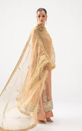 Radiate timeless elegance in this peach tissue organza formal outfit, intricately adorned with delicate hand embellishments and shimmering details with pearls. Paired with a richly embellished border and a sheer green tissue organza dupatta, this three-piece ensemble embodies sophistication and grace. Perfect for festive gatherings, weddings, or formal soirees, it is designed to bring effortless charm to your wardrobe. Dupatta: it is given with pure tissue dupatta with lace borders and spray of sequence.