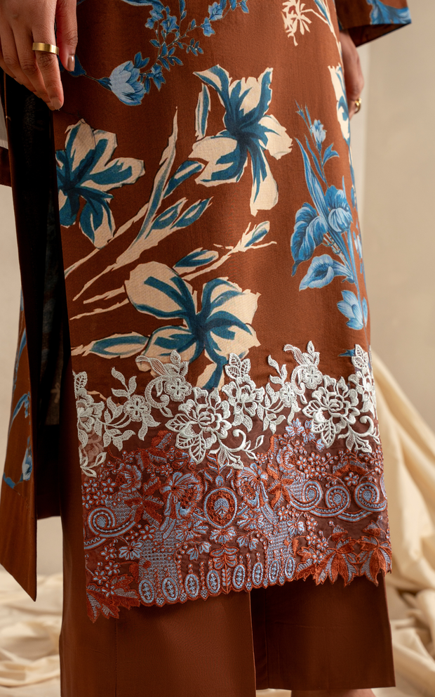 Embroidered border for daman front on organza.