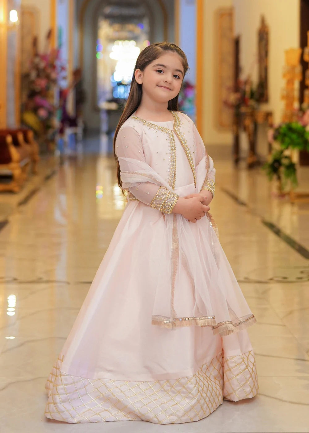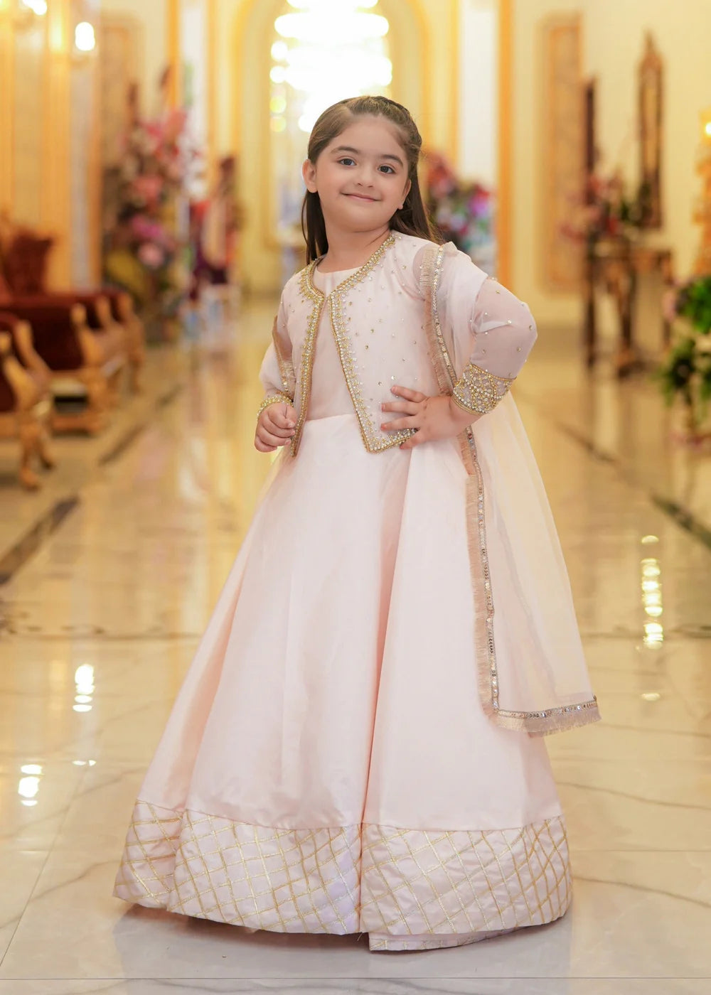 Radiate timeless beauty with this floor-length tea pink pishwas, exquisitely adorned with adda work that adds a subtle shimmer and intricate detail to its flowing silhouette. Paired with a matching dupatta, this ensemble captures pure sophistication and grace—perfect for weddings, festive occasions, and formal celebrations. A statement of classic elegance with a soft, feminine charm.