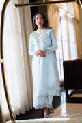 Introducing Arctic Glow €“ a refined two-piece from the Diva collection in a serene light blue hue. Crafted for effortless elegance, it features delicate hand embellishments on the neckline, adding a touch of sophistication. Paired with stylish culottes, this ensemble offers a perfect balance of grace and modern charm, making it a must-have for any chic wardrobe.