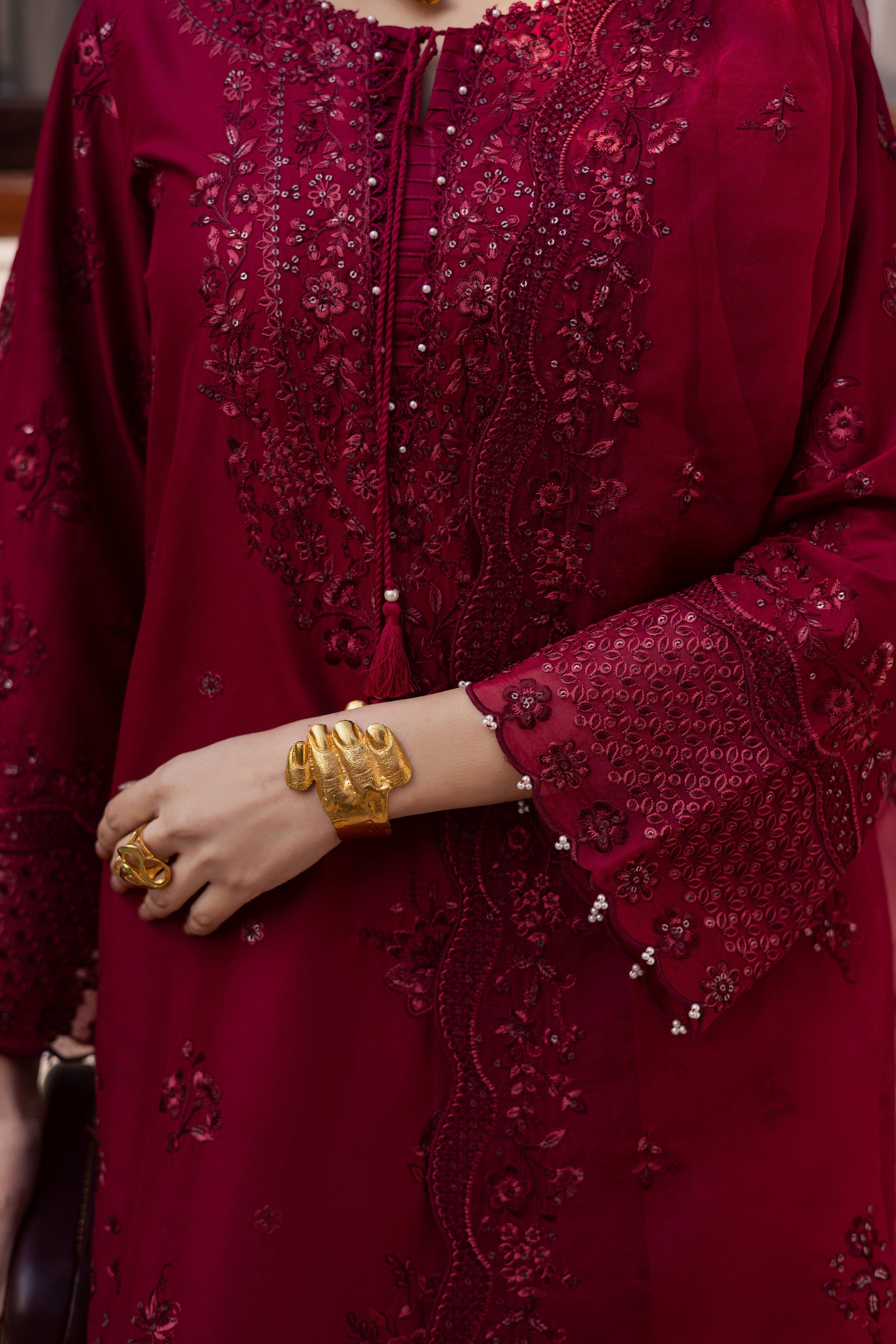 An organza embroidered dupatta completes the outfit, adding softness and a refined festive touch suitable for Eid day celebrations.