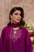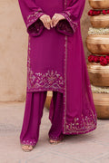Paired with a matching georgette shalwar, detailed with an embroidered border at the hem. The relaxed silhouette keeps the outfit comfortable while maintaining a polished festive feel.