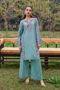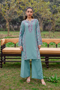 The outfit is paired with matching cambric culottes finished with spread embroidery, offering comfort and elegance for daytime Eid celebrations.