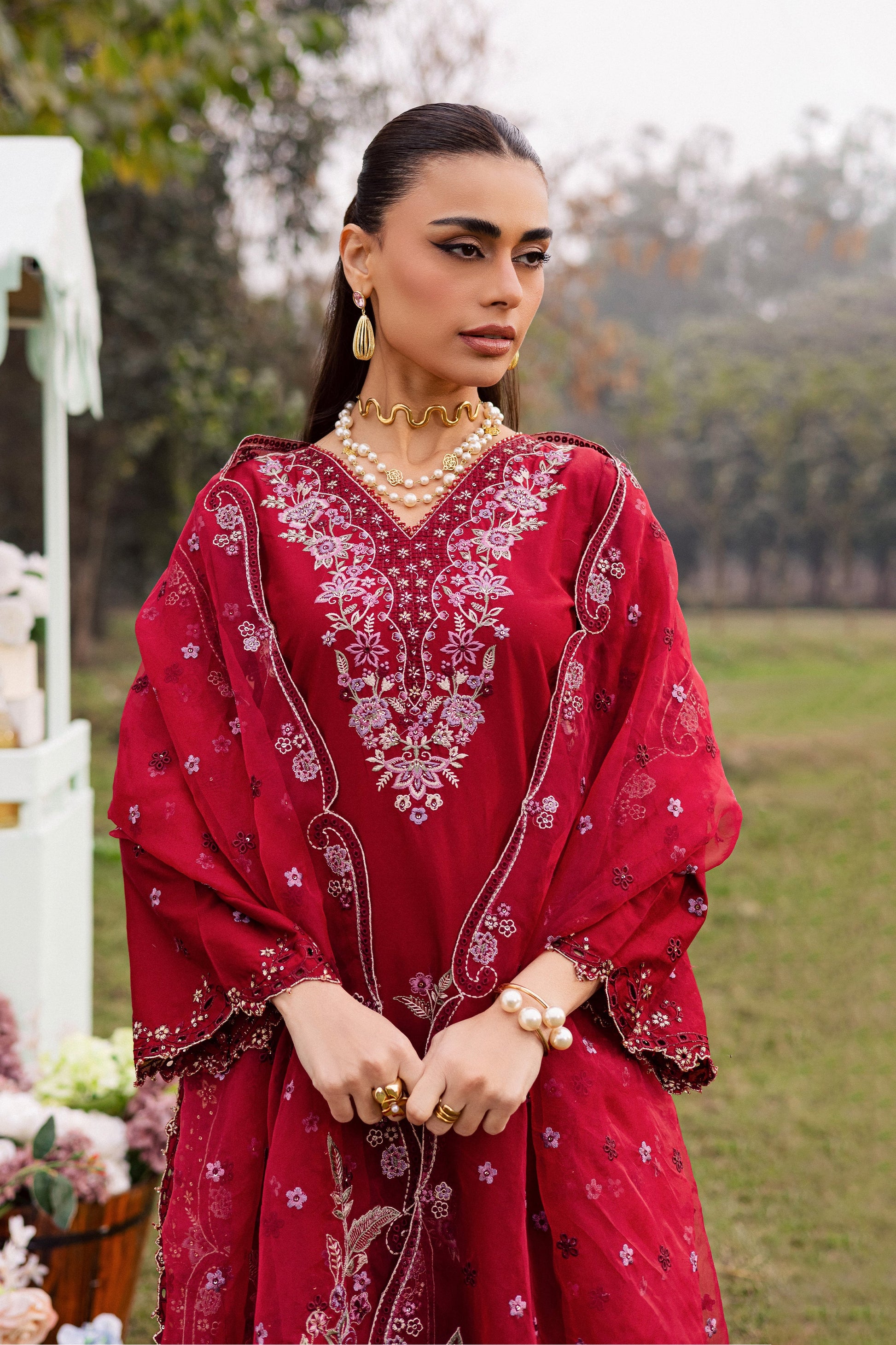 An organza dupatta completes the look, designed with composed embroidered borders and spread for a polished Eid finish.