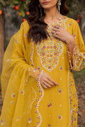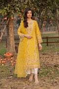 Fully embroidered honey-colored long shirt tailored in luxurious Pima lawn, showcasing dense embroidery throughout and finished with finely embroidered organza borders that lend a polished and elevated festive appeal.