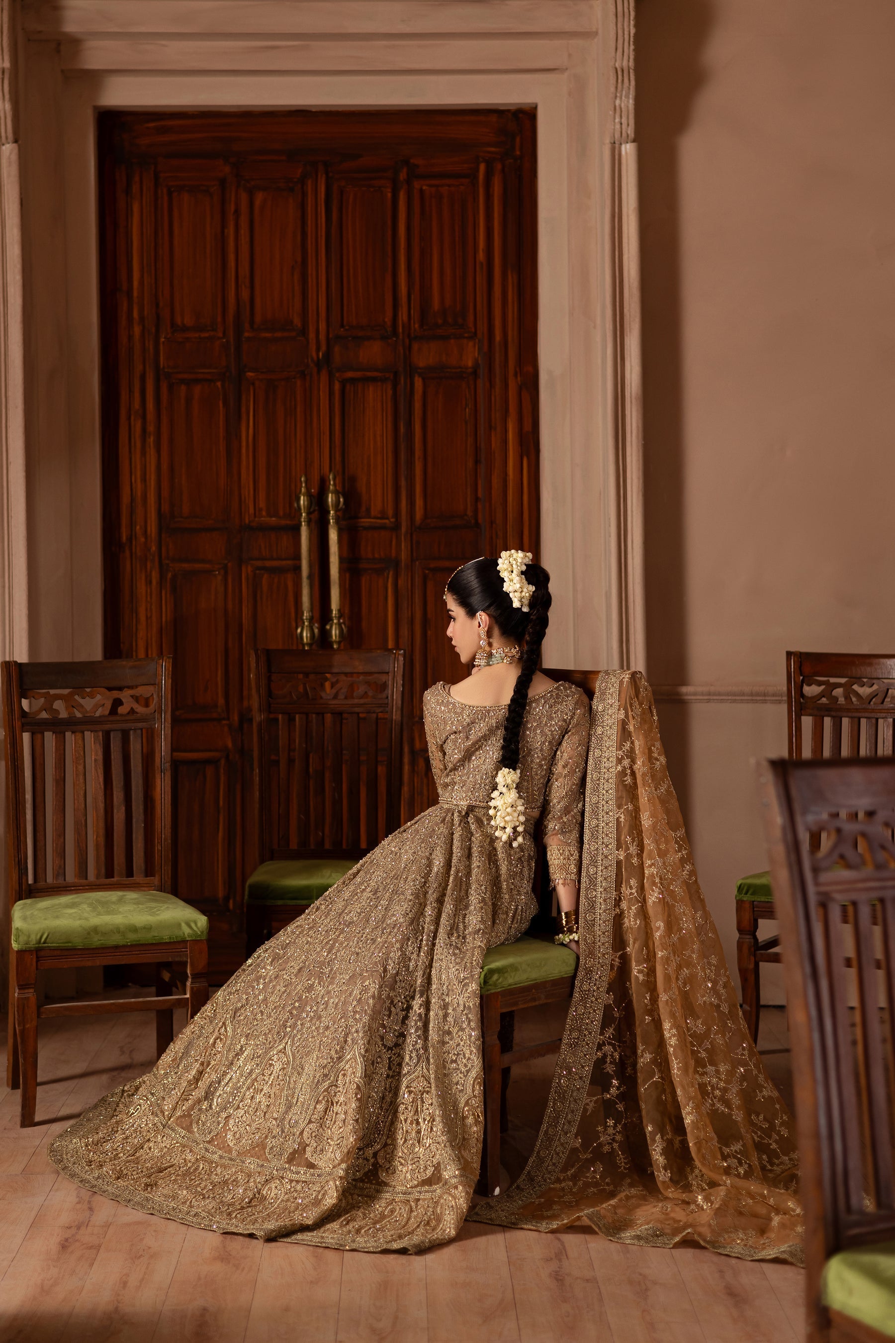 A contrasting rust dupatta completes the attire, embroidered in an elegant jaal pattern that exudes timeless grace. Its borders are delicately finished, while embellished hangings along the edges add a touch of tradition and splendor. Draped effortlessly, the dupatta balances the ensemble with sophistication and grandeur.