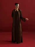 This stunning chiffon upper gown comes in a breathtaking shade of rich brown, exuding warmth and elegance of embroidery, adding subtle texture and charm. Paired with a matching chiffon inner, the ensemble flows effortlessly perfect for making a graceful statement.
