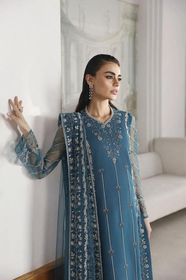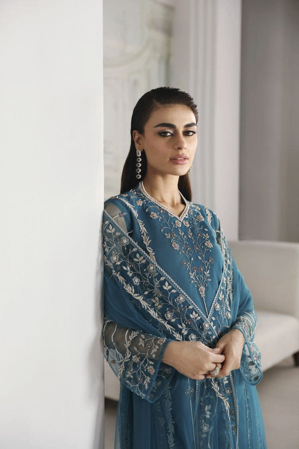 Imagine yourself stepping into the spotlight, feeling confident and beautiful. This stunning teal ensemble, featuring a net shirt and dupatta adorned with intricate hand embroidery, pearls and cutdana embellishments, is more than just clothing; it's a masterpiece of artistry.