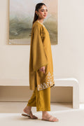 - Crafted from premium linen, this ready-to-wear piece features a relaxed boxy silhouette with drop shoulders for effortless comfort. The front showcases intricate embroidered panels that add artisanal detail, while the back maintains a solid sage green dye for balanced sophistication. A delicately embroidered round neckline completes the design, blending traditional craftsmanship with contemporary styling. Perfect for those seeking understated elegance with textural interest.