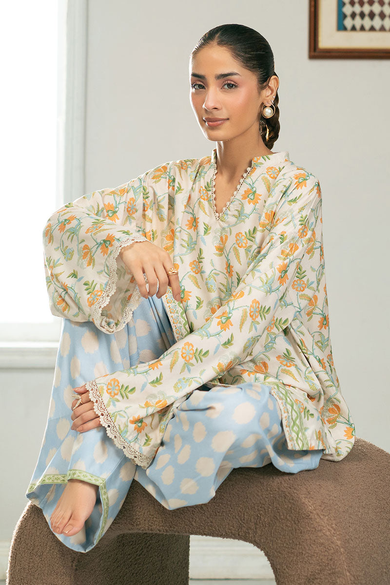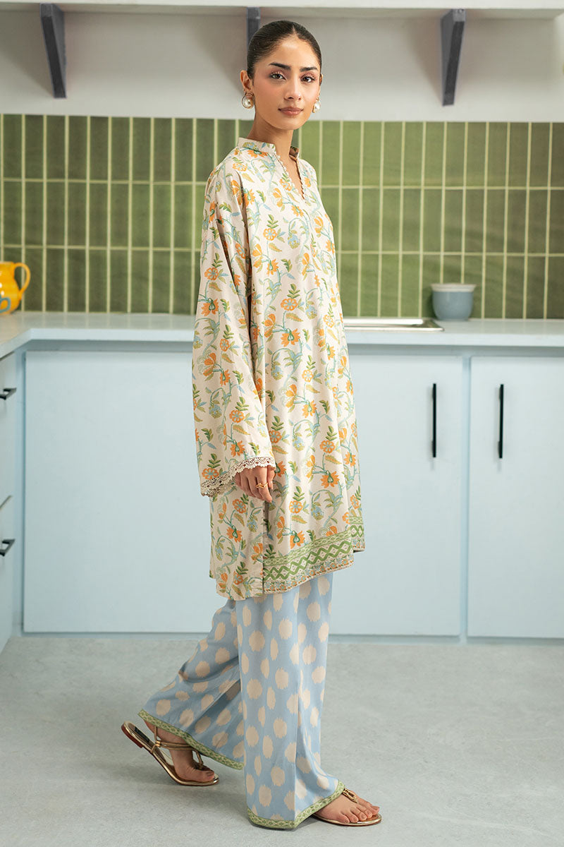 - This AQUA ICE-2PC set features a stylish boxy linen shirt with front and back prints, a V-neck collar, and elegant flared sleeves for a modern silhouette. Complemented by a printed linen farshi shalwar, this ensemble blends comfort with sophisticated design, perfect for both casual and semi-formal wear.