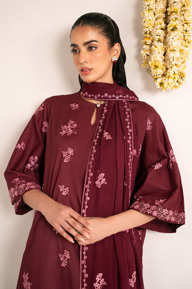 - Expertly crafted ROSE GLAM 2PC ensemble featuring a sophisticated batwing shirt with front embroidery and all-over dyeing. The crew neck is elegantly detailed with a keyhole button closure. Complemented by a luxurious chiffon dupatta with coordinating dye treatment and intricate embroidery, creating a harmonious and refined look.