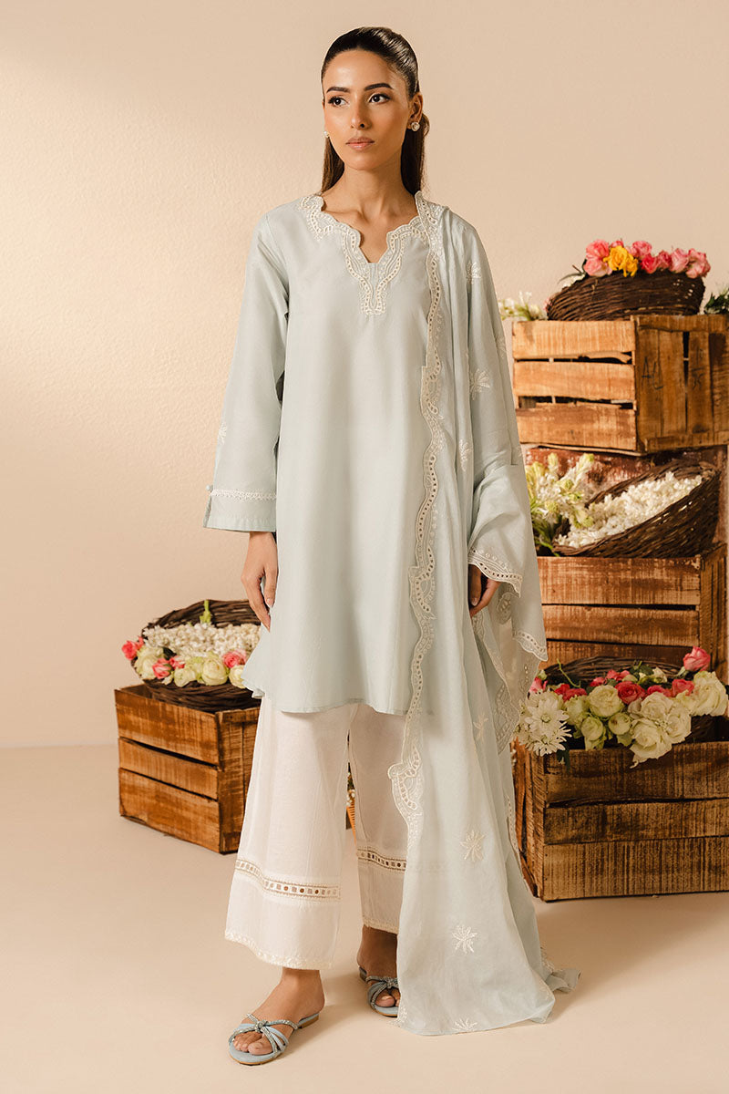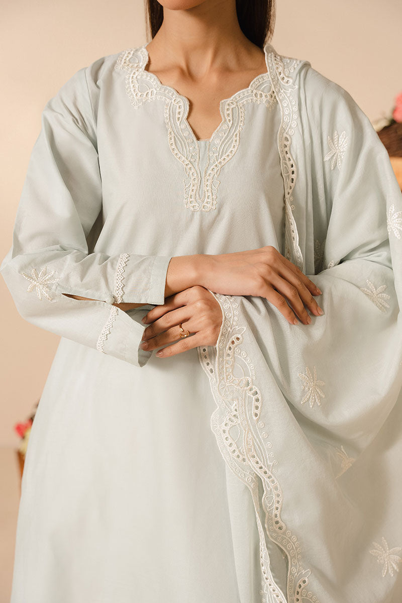 Expertly crafted, the SKY GRAY-2PC (SHIRT & DUPATTA) is designed with an A-line style in soft Lawn fabric. The front and back are plain dyed, while the crew neck is embellished with cut work embroidery. The straight sleeves feature a cuff and motif detail, adding a touch of elegance to the overall look. The dupatta is made from Lawn fabric with delicate embroidery, making it the perfect complement to the shirt.