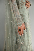 Élan Luxury Prêt presents Rêve de Givre€”a vision of ice-blue elegance and transcendent beauty. This masterful creation, meticulously hand-embellished, is crafted from the finest ethereal fabrics in soft, airy hues that evoke pure sophistication. The enchanting long-shirt silhouette, adorned with opulent gold-chrome accents, is a testament to refined artistry. Each floral motif is a masterpiece, brought to life with luminous sequins, delicate gotta, lustrous pearls, and glistening crystals€”every element woven together in a symphony of grandeur. Paired with a lavishly adorned net dupatta and sumptuous raw silk crushed pants, Rêve de Givre is more than an ensemble; it is a declaration of timeless elegance and supreme luxury. Perfectly poised for wedding festivities, it stands as the quintessential choice for those seeking an unforgettable statement of style.