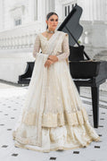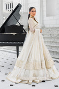 The outfit is a stunning white pishwas paired with a matching embroidered lehenga. The Lehnga is adorned with delicate gold thread work, adding a touch of luxury and sophistication, creating a cohesive and harmonious look. The white and gold color combination gives the outfit a regal and elegant appearance, perfect for formal events. Embroidered Front and Back Body 1 Pair on Net Fabric Embroidered Sleeves 1 Pair on Net Fabric Embroidered 7 Pcs Panels-I on Net Fabric Embroidered 7 Pcs Panels-II on Net Fabric Embroidered 5 Yard Panel Border on Organza Fabric Embroidered 2.8 Yard Dupatta on Net Fabric Embroidered 2.8 Yard Dupatta Pallu Border on Net Fabric Embroidered 8 Pcs Panels for Lehnga on Silk Fabric Plain Dyed Fabric 2 Yard for Blouse Lining and Lehnga Belt Plain Dyed Fabric 4.5 Yard for Lehnga Lining Ornaments (Pearls) Fabrics: Pishwas: Net Lehnga: Raw Silk Dupatta: Net