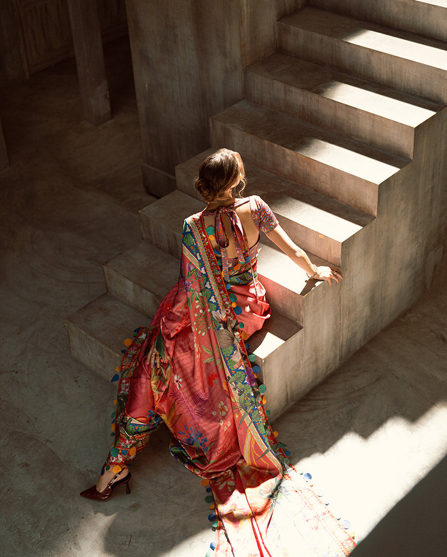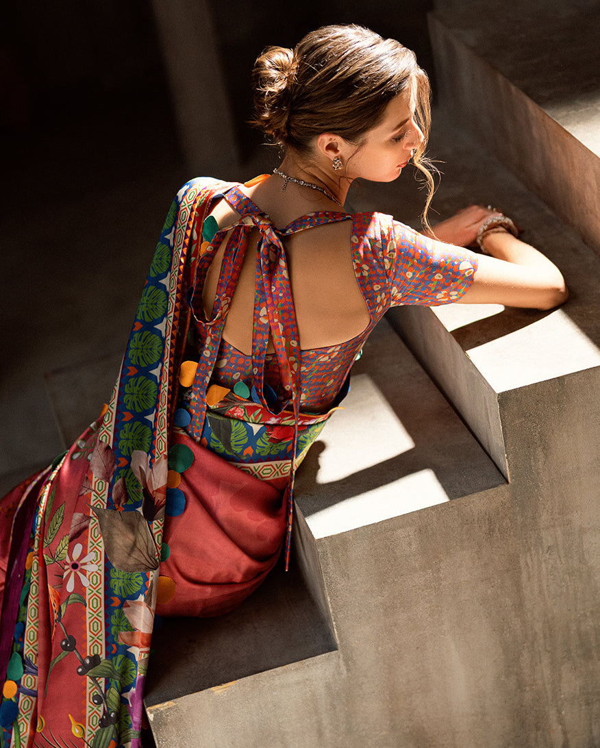 Turn heads with our luxuriously crafted Silk Sarees, paired with exquisitely hand-embellished and finely embroidered blouses. Each saree is a masterpiece €” rich in texture, flawlessly finished, and designed to drape like a dream. The blouses are adorned with intricate details that add a regal touch, making these ensembles perfect for weddings, festivities, and all your standout moments.