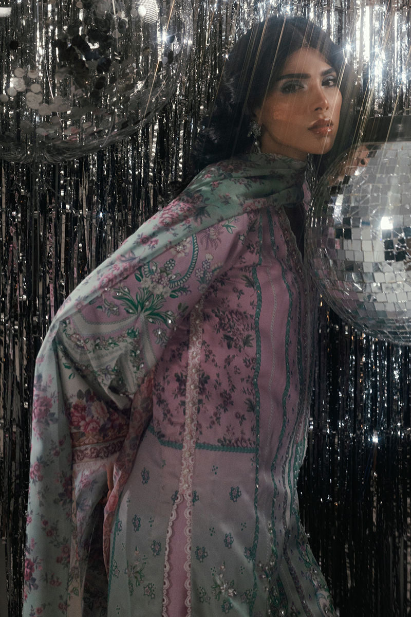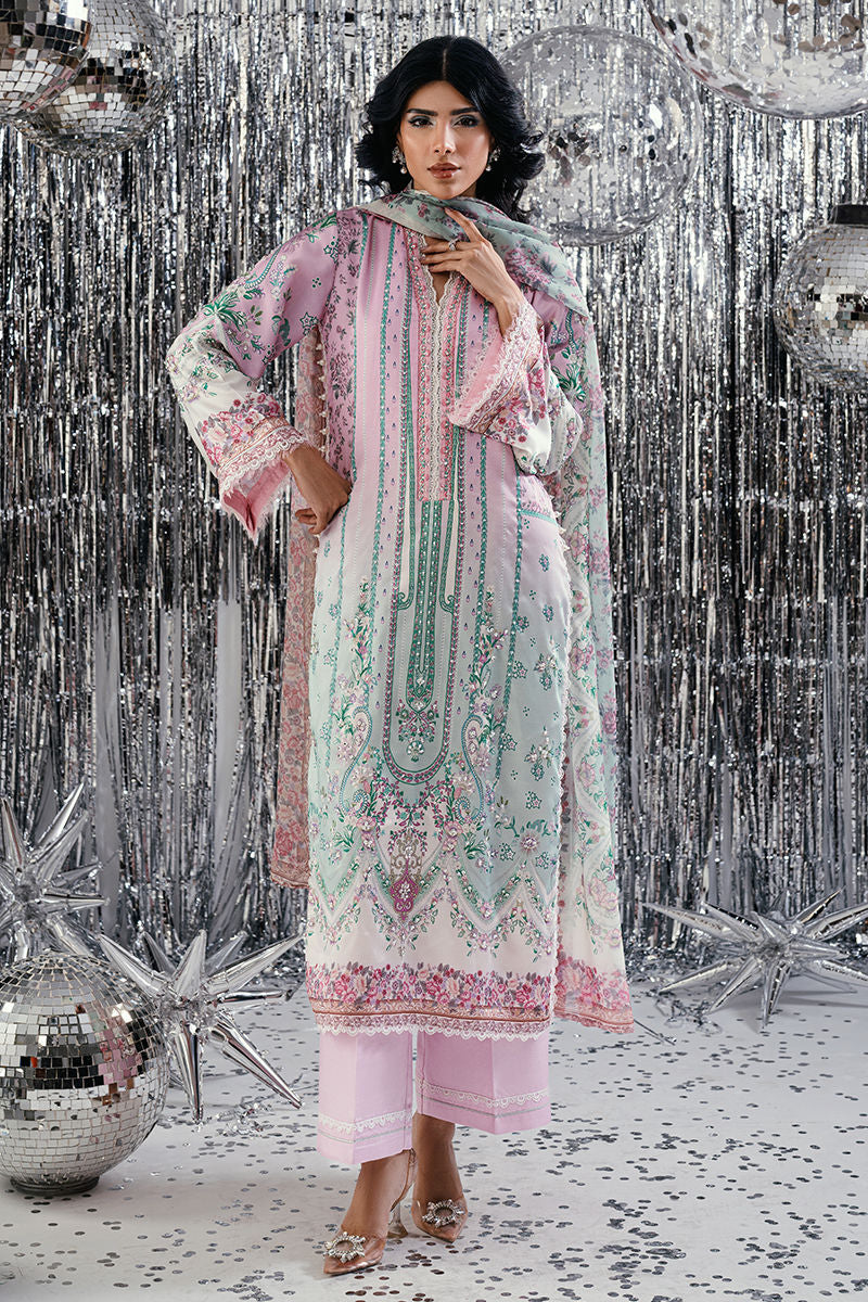 Soft yet striking, Mint Blush Harmony blends two serene shades mint and light pink into a delicate composition of elegance. The shirt features intricate handwork and embellishments, paired with a tailored trouser and a digital print dupatta that completes the look with a touch of artistry and refinement.