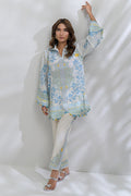 Elevate your wardrobe with this breezy and refreshing Swiss lawn co-ord set that features a blue and lemon-yellow color palette that adds a citrusy lift to the off-white base. A loose, straight kurta with a scalloped hem and fabric manipulation detaliling effortlessly pairs with tapered ivory pants detailed with matching motifs. This outfit is Ideal for a seaside lunch or a serene day out.